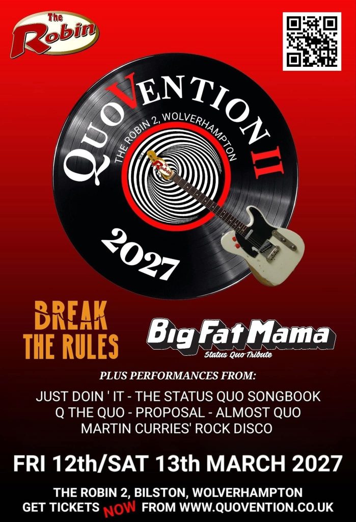 Following the success of the 1st Quovention in March 2025 many asked if we were going to do another. We couldn’t say no! So, we’re pleased to announce on Friday 12th & Saturday 13th March 2027 we’ll be holding QuoVention II at THE ROBIN 2, BILSTON, WOLVERHAMPTON, WV14 7LJ.