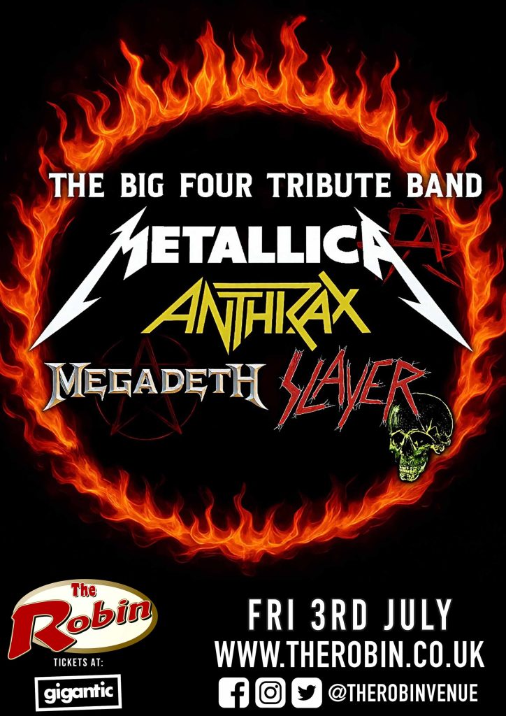 We can’t wait to see The Big Four Tribute band at The Robin for the first time, FFO Metallica, Anthrax, Megadeth & Slayer & not to be missed!!!