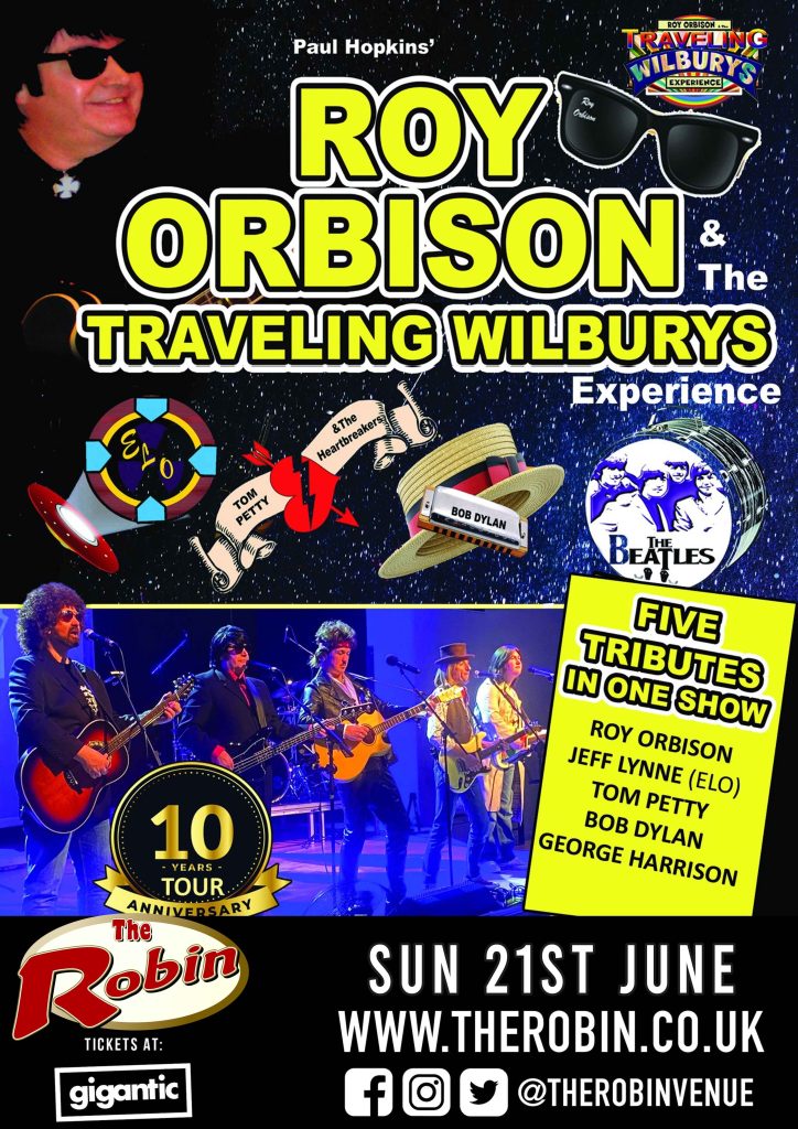 We are now in our tenth touring year, celebrating the music of The Traveling Wilburys. They were a ‘once in a lifetime’ supergroup and although they were only together a short time, and never toured, they became a phenomonen. Their first album rocked the music industry, and sold over 5 million copies worldwide. The Traveling Wilburys were made up of Five Music Legends: Roy Orbison, Jeff Lynne, Tom Petty, Bob Dylan and George Harrison. We pay tribute to these global superstars in our show and not only will you enjoy the hits made famous by The Wilburys, but you can also enjoy music by these individual Icons too.